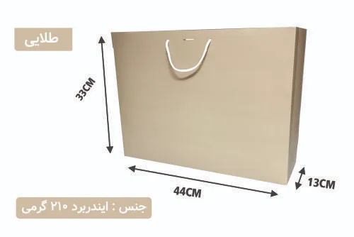 اگر بهدنبال یک ساک دستی آماده هستید که علاوهبر استحکام، ظاهری متفاوت و چشمگیر داشته باشد، مدل ایندربرد طلایی با ابعاد ۱۳×۴۴×۳۲ سانتیمتر بهترین انتخاب است. این ساک از مقوای ایندربرد ۲۱۰ گرمی ساخته شده که سطحی صاف، مقاوم و درخشان دارد و برای برای برندهایی که به کیفیت اهمیت میدهند، مناسب است.