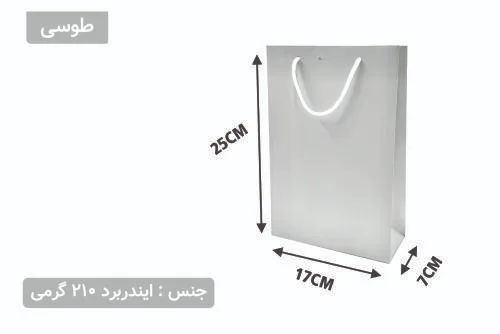 اگر بهدنبال یک ساک دستی مقاوم و شیک برای بستهبندی محصولات کوچک و ظریف هستید، این مدل با ابعاد ۷×۱۷×۲۵ سانتیمتر انتخابی ایدهآل است. جنس ایندربرد ۲۱۰ گرمی، علاوهبر استحکام بالا، سطحی مناسب برای چاپ و شخصیسازی برند فراهم میکند.