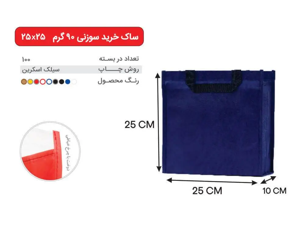 جنس سوزنی 90 گرمی باعث شده این ساک علاوه بر مقاومت در برابر پارگی، ظاهری منسجم و حرفهای داشته باشد. برای چاپ لوگو و پیام تبلیغاتی کسبوکار شما، سطح صاف و یکنواختی را ارائه میدهد که کیفیت چاپ را تضمین میکند و رنگها را بهخوبی به نمایش میگذارد. این ویژگی به شما امکان میدهد تبلیغات خود را با وضوح بالا و دوام طولانیمدت ارائه کنید.