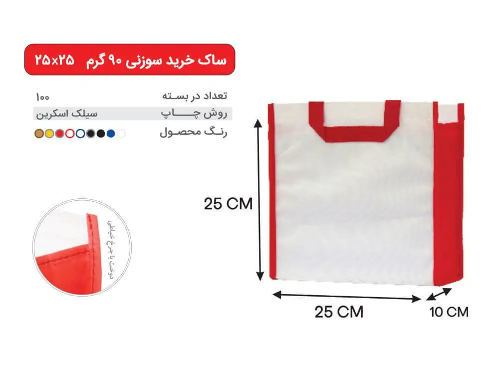 بگ سفید قرمز 25×25 پارچه ای 90 گرمی