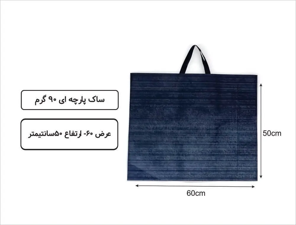 رنگ سرمهای تیره همراه با خطوط راهراه ظریف، جلوهای حرفهای و مدرن به ساک میدهد. از این ساک میتوان در نمایشگاههای فروشگاهی، رویدادهای تبلیغاتی و همایشهای شرکتی برای ارائه هدایای تبلیغاتی به مشتریان استفاده کرد. ابعاد ۵۰×۶۰ سانتیمتر آن نیز برای حمل اقلام متنوعی مانند پوشاک، کتب، لوازم آرایشی و بهداشتی و انواع هدایای شرکتی کاملاً مناسب است.