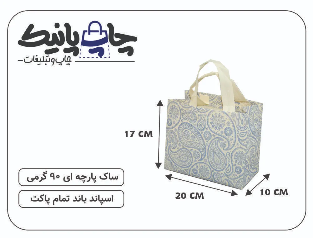 ساک پارچه ای 20×17×10 سفید آبی ترنجی