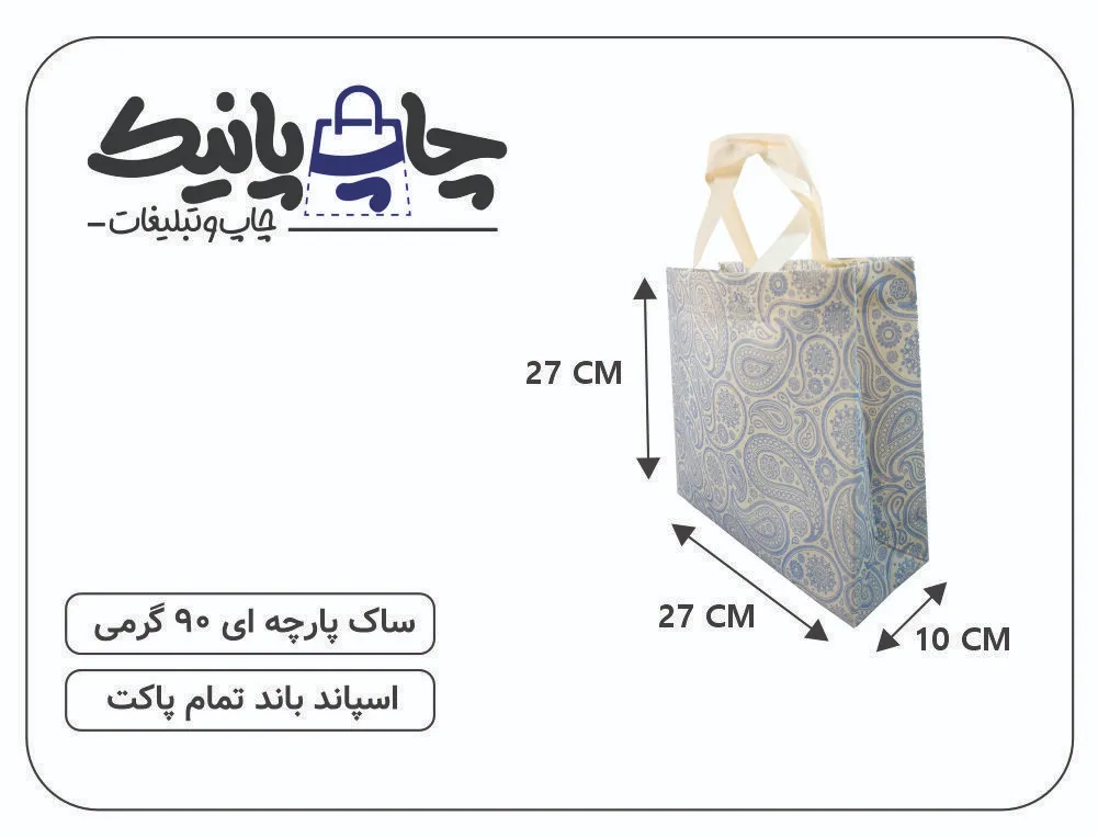 ساک پارچه ای 27×27×10 سفید ترنجی سرمه ای