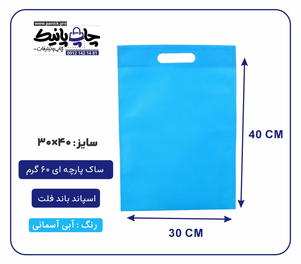 کیسه پارچه ای آبی آسمانی فلت سایز 40×30 بسته 100 عددی
