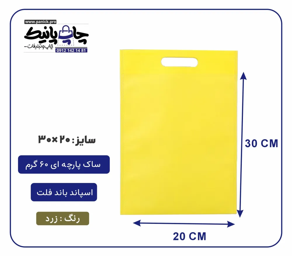 کیسه پارچه ای زرد فلت سایز 30×20 بسته 100 عددی