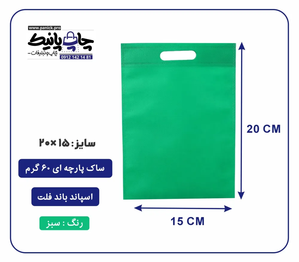 کیسه پارچه ای سبز فلت سایز 15×20 بسته 100 عددی