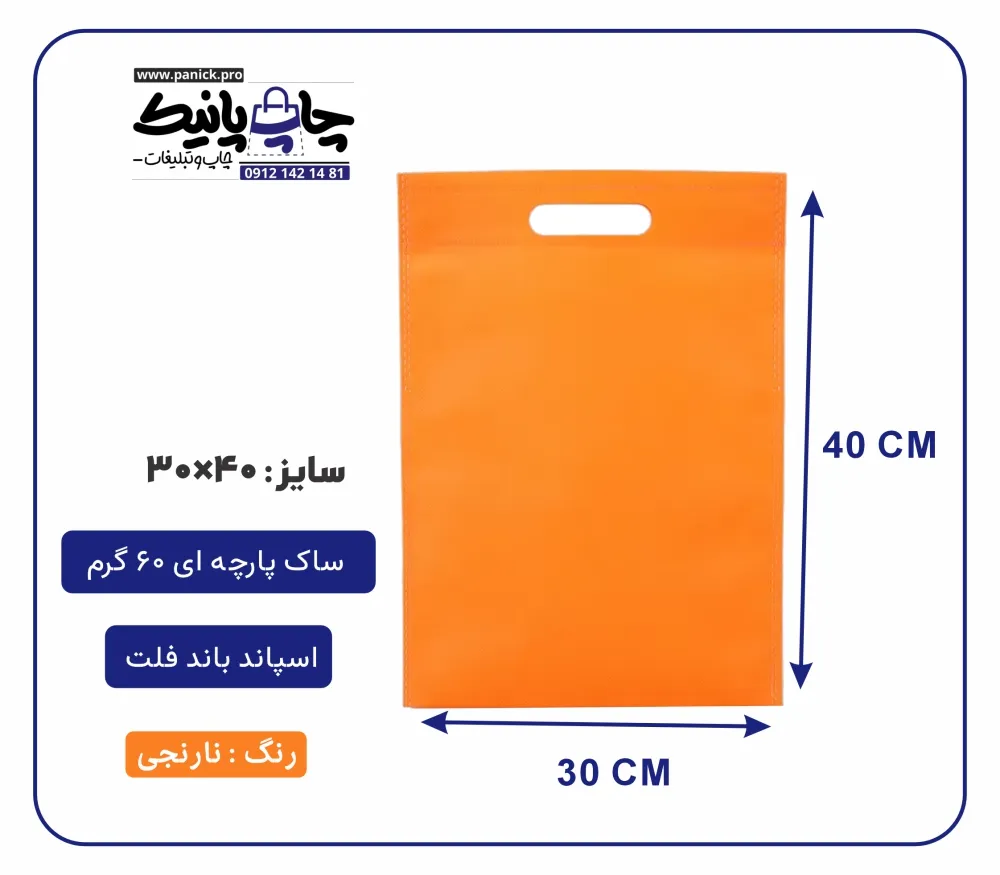 کیسه پارچه ای نارنجی فلت سایز 40×30 بسته 100 عددی